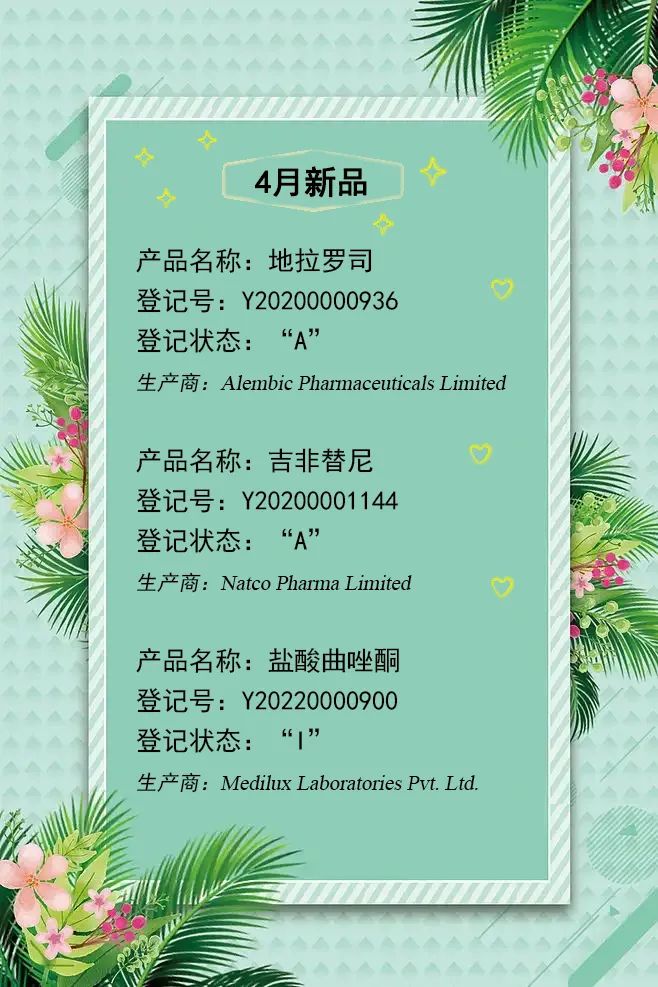 以下为新增 原料药明细: